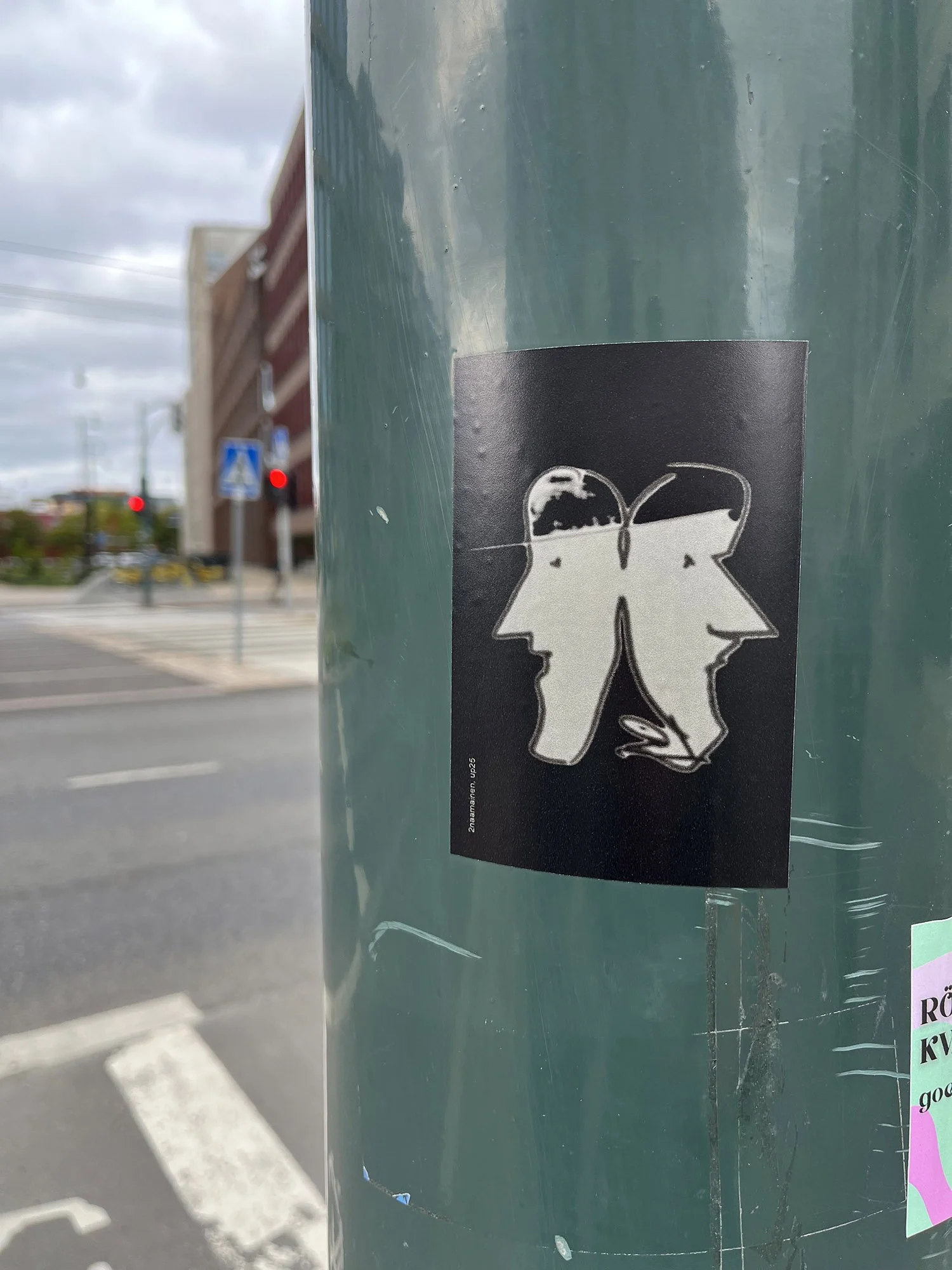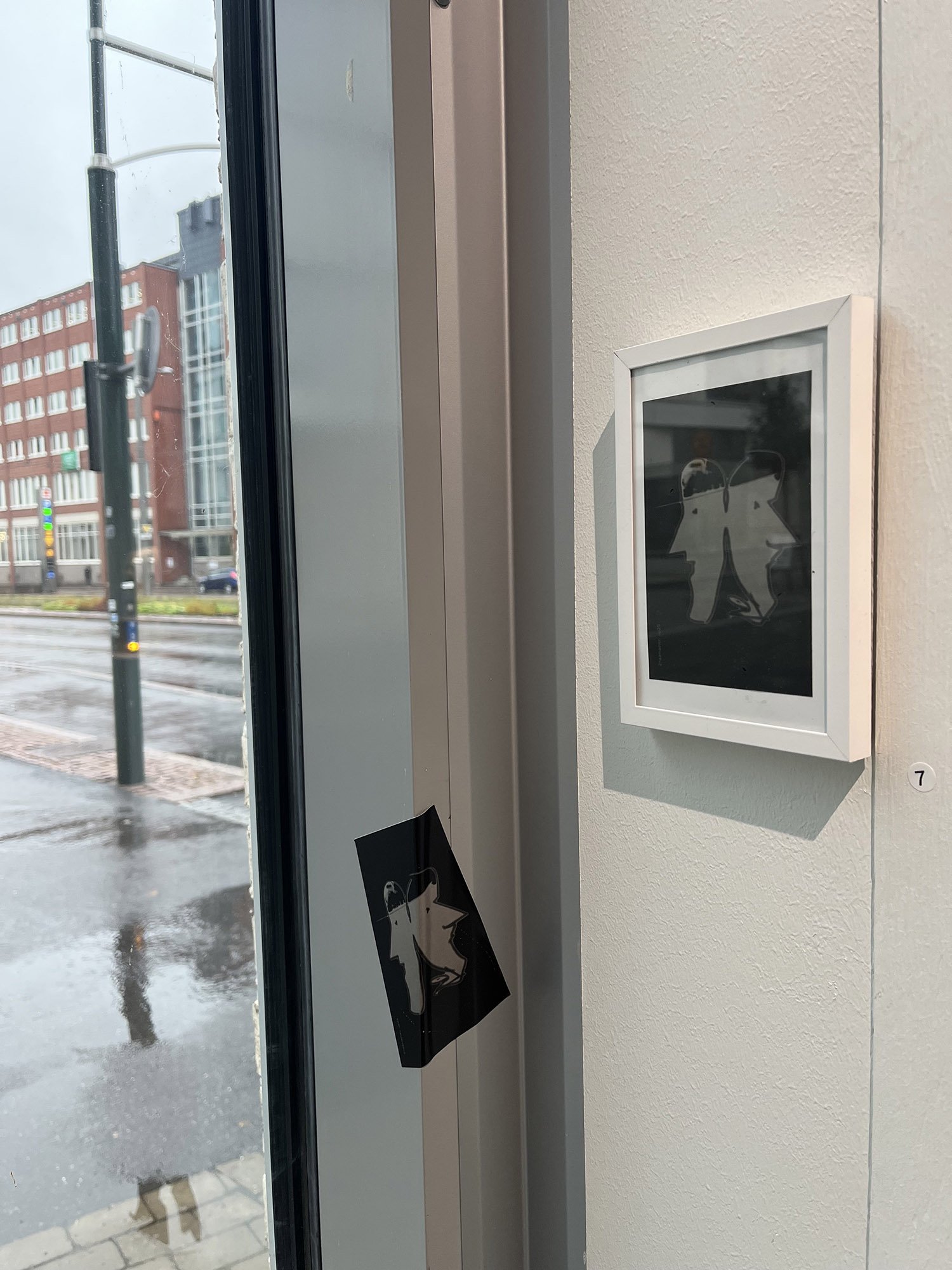 2naamainen, lyijykynäpiirustus, tarra, 11x8 cm, Vapaudesta-näyttely, Galleria Longa, Helsinki 2025